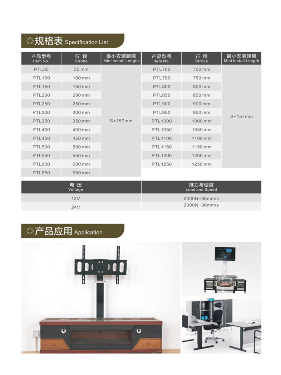 步进电动推杆规格选型表